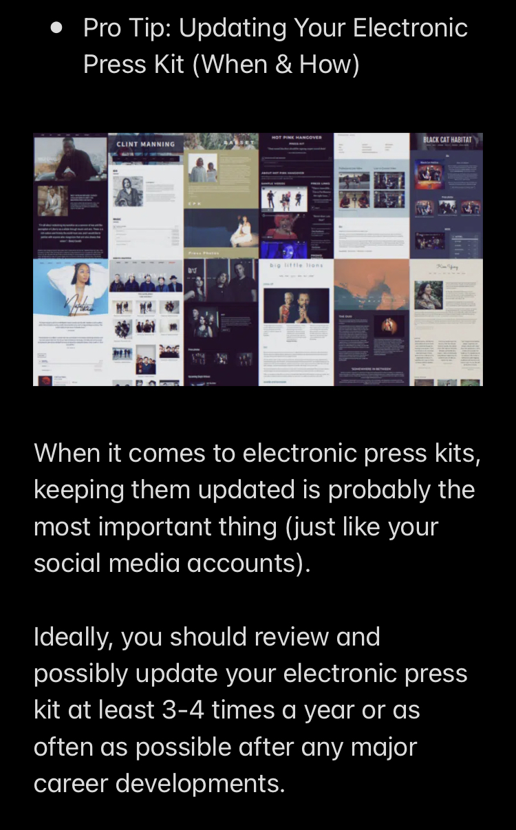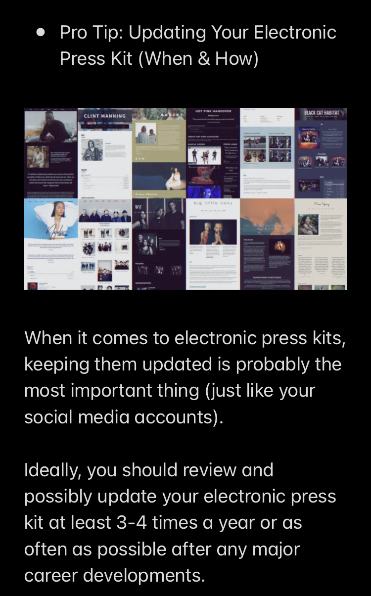 - Pro Tip: Updating Your Electronic Press Kit (When & How)