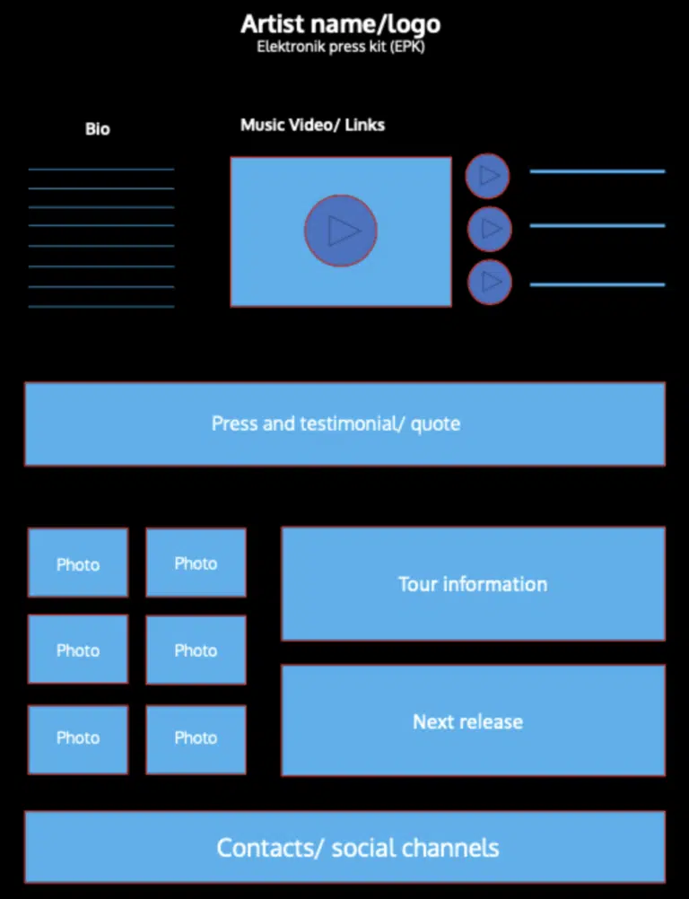 A well-designed, comprehensive EPK not only informs but also impresses. The overall aesthetic and layout of your EPK can affect how your information is perceived, big time. So, choosing the right layout, design, and relevant information to include can make all the difference.